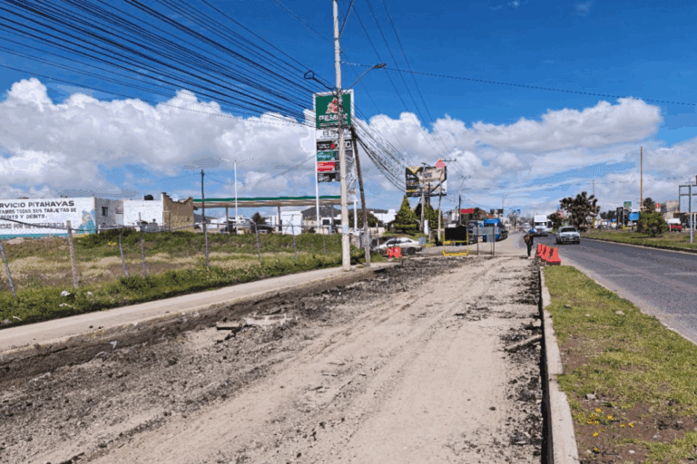 Personal de la Secretaría de Obras Públicas de Pachuca lleva a cabo labores de bacheo en la calzada de Cuesco, con el objetivo de mejorar las condiciones de tránsito y seguridad para los automovilistas.